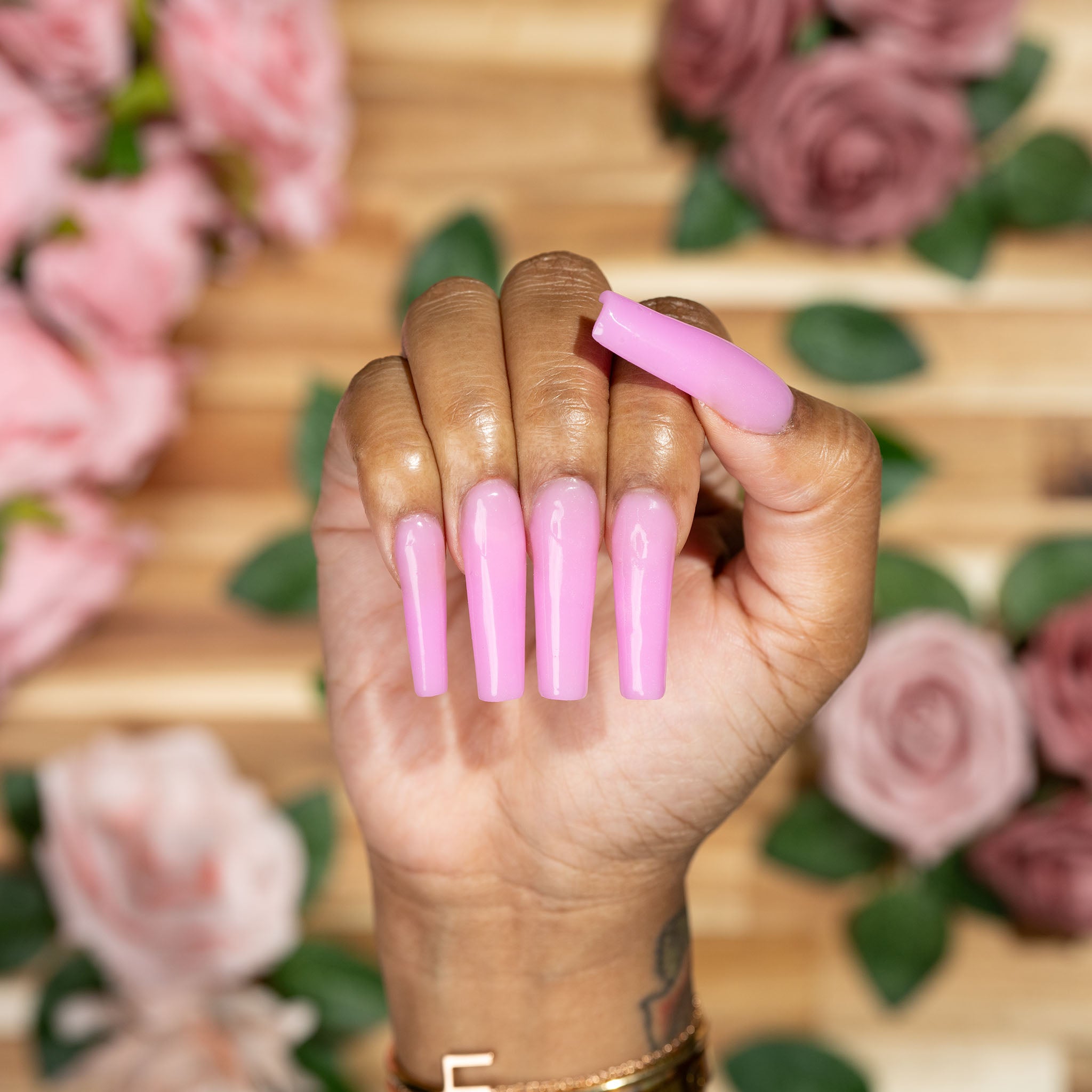 This adorable polygel combines a light pink base with enchanting iridescent shimmer, creating a dreamy, fairy tale-inspired look.